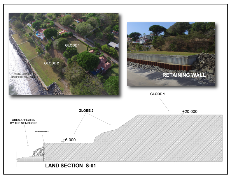 This lot is completely ready to start any construction. In this map we show you the levels that you will have on the ground. The lot has a concrete retaining wall.